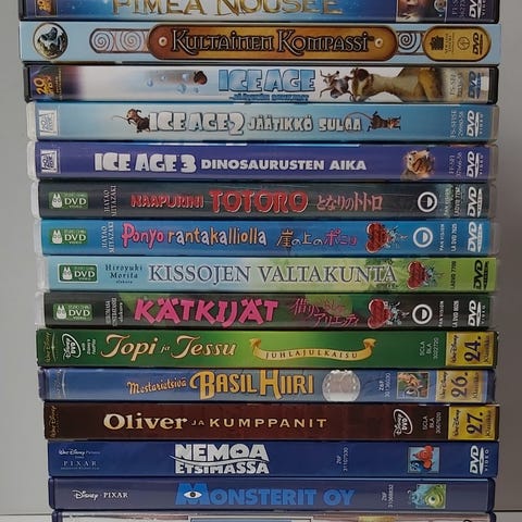 Lasten piirrettyjä ja elokuvia, animaatioita jne. Aikusillekin leffoja. Osa kuvissa olevista jo myyty, ajankohtainen listaus alla. Toridiilillä kulkee myös
