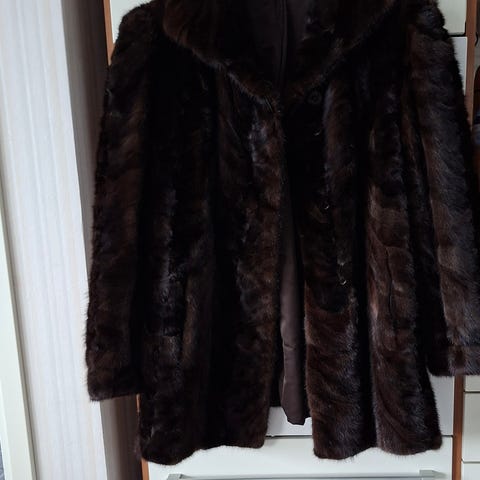 Muuten täysin virheetön minkkiturkki, mutta vuoressa reikä, joka ulottuu läpi (näkyy kuvissa). Uskoakseni helposti korjattava. Ollut aikoinaan S-M kokoisella naisella.