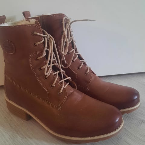 Uudet pari kertaa jalassa käyneet mustat Migant Luna talvikengät. Eivät sopineetkaan omaan jalkaan. Kärjessä pitopohja ja kannassa käännettävät liukuestepiikit. Ovh 109€.