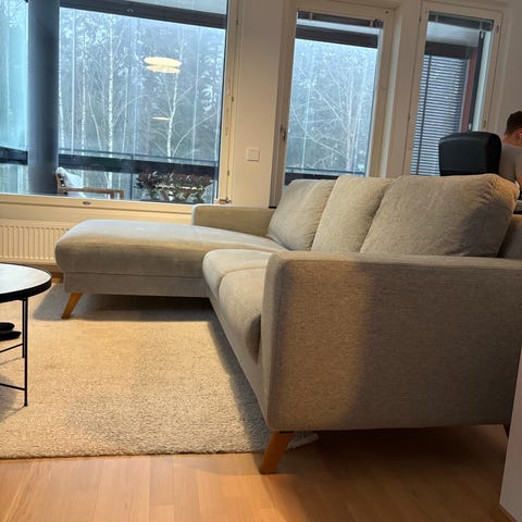 Myynnissä Kivik divaanisohva. Sohvan runko ja jouset ovat ehjät. Tyynyt todella upeassa ryhdissään. Kivik sarjan sohvat ovat mielestäni yksiä Ikean parhaita sohvia istuinmukavuudeltaan ja rungoltaan. Sohva on ollut lemmikkieläimettömässä taloudessa. Sohvan kaikki päälliset ovat ovat irrotettavissa pesuun. Rungon päällinen mukaanlukien. Lisäksi päälliset ovat halutessaan vaihdettavissa. Sohvassa divaanin puolisuus on vaihdettavissa. Sohvassa EI OLE vuodeominaisuutta. Sohva menee kuljetuksen ja kantamisen ajaksi kahteen osaan. Näin ollen kuljettaminen ja kantaminen on suhteellisen helppoa. Huomioitavaa sohvan kunnossa: Pesusta huolimatta päällisiin jäi muutama erittäin haalea tahra. Mitä luultavammin tahrat eivät edes näy normivalaistuksessa, mutta myymälämme tehokkaassa led valaistuksessa ne himmeästi näkyvät. Kyseiset tahrat huomioitu hinnassa rankalla kädellä. Sohvan hinta: 479e.