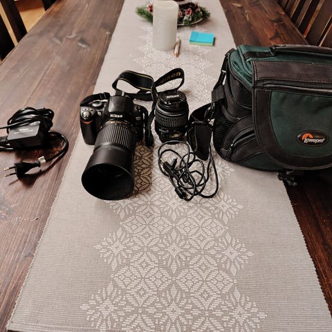 Myydään Nikon D40X -digitaalinen järjestelmäkamera kahdella Nikonin alkuperäisellä DX-objektiivilla, akun ja laturin kanssa. Kameraa ei ole käytetty paljon, mutta se on ollut pitkään käyttämättömänä kaapin perällä kameralaukussa, ja on ulkoisesti siistissä kunnossa.