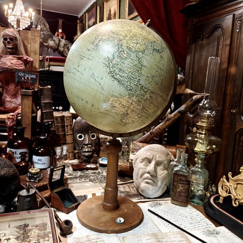 Muuta: Erittäin upea ja harvinainen kohde, ensimmäinen meillä laatuaan… Harvoin olemme nähneet näin kaunista ja yksityiskohtaista kuumailmapallomallia, joka on myös aidosti vanha. Tämä ranskalainen kuumailmapallomalli edustaa aikakautta, jolloin ilmamatkailu oli sekä tieteellinen ihme, että myös tietyllä tavalla romanttinen näky. Punakultaisessa pallossa on upeat barokkityyliset koristelut ja kyydissä olevat ”herrasväen” edustajat luovat tästä kokonaisuudesta suorastaan tarinallisen kohtauksen kuvitteelliselta tutkimusmatkalta. Kohde sopii erinomaisesti lähes mihin tahansa antiikkiseen sisustukseen ja se on myös kokonsa puolesta todella vaikuttava esine!