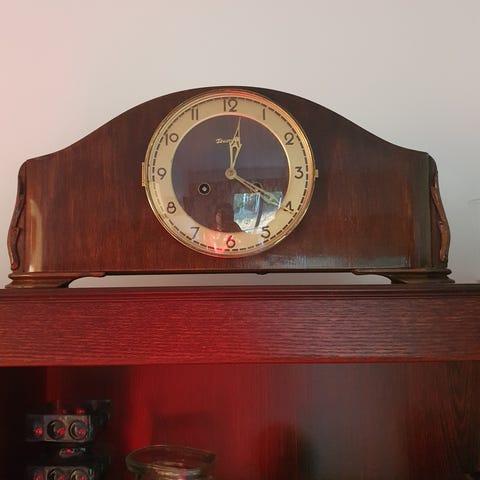 Muuta: Tässä on kohteena varsin hieno ranskalainen kelloteline (tai korurasia), jossa säilytät tärkeimmän aarteesi suojassa ja samalla esillä. Tämä kelloteline edustaa Napoleon III -kauden koristeellista esineperinnettä, jossa kauniiden materiaalien ja koristeluiden visuaalinen runsaus yhdistyvät ranskalaiseen käsityötaitoon. Rasian runko on verhoiltu jalopuuviilulla, jonka marquetry-tekniikka luo kauniita geometrisia kuvioita. Messinkiset koristeupotukset ja helmiäisdetaljit antavat viitettä tuon aikakauden ranskalaiseen salonkikulttuuriin, jossa loisto, hienostuneisuus ja visuaalinen teatraalisuus olivat keskeisiä ihanteita. Esine on todennäköisesti ollut osa porvariskodin tai herraskartanon sisustusta, tämä esine on itsessään kuin koru!