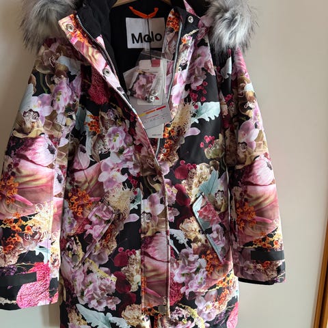 Molon pidemmän mallinen Peace Bouqet talviparka koossa 140. Erittäin hyväkuntoinen yhden tytön käyttämä. Ei kulumia, pehmentymiä tai tummentumaa. Ollut lapsen lempparitakki, mutta jäi ennakoitua aikaisemmin pieneksi kesken kauden.