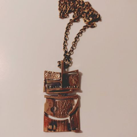 Tämä on Jorma Laineen suunnittelema vintage "Naamio" (tai "Naama")-kaulakoru, jonka on valmistanut Turun Hopea Oy.