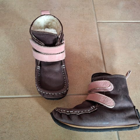 Siistit lämminvuoriset paljasjalkakengät koossa 26. Pohjallisen sisämitta 17 cm.