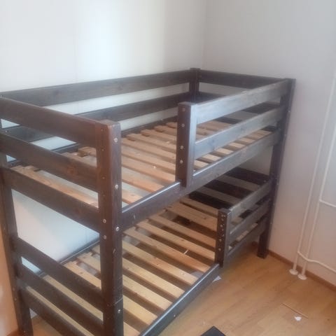Myydään hyvässä kunnossa oleva harmaanvärinen lasten kerrossänky.