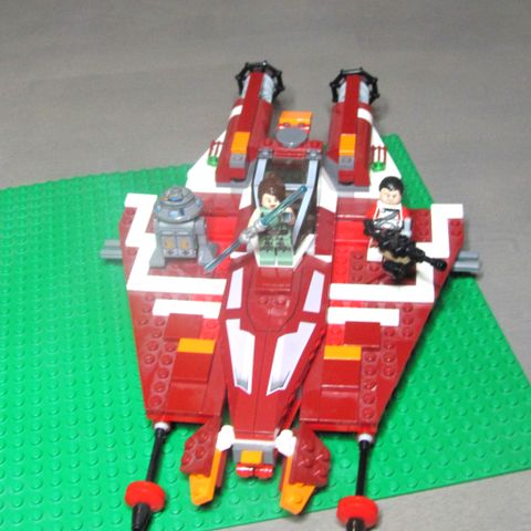 Mukana vain alus – ei minifiguureja, ei E-Wingiä eikä muita osia. Kaikki osat tallessa sekä ohjeet saa myös mukaan.