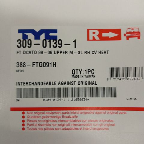 Fiat Ducato/Peugeot Boxer/Citroen Jumper sivupeilinlasi vasen