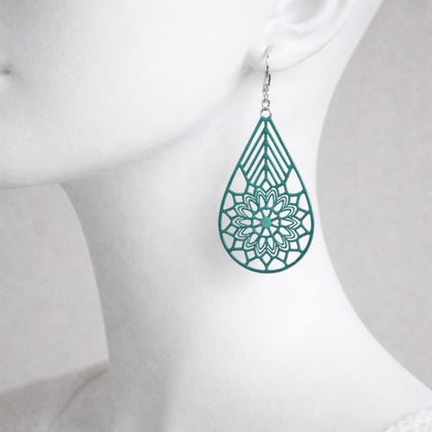 Keraamikko Tiina Harjolan korvakorut. Kuva kummallakin puolella. Uudet