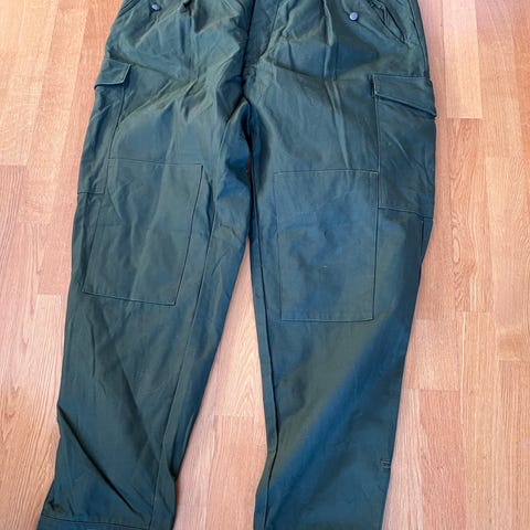Housuissa on vetoketjulahkeet ja kiristysnyöri vyötärössä, mikä helpottaa pukemista saappaiden kanssa, oikeaa sotilaskamaa, ei siviiliversio
