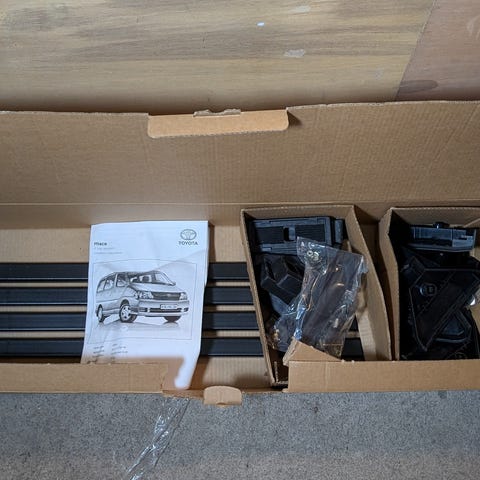 Hiaceen sopivat kiinnikkeet mukana, mahtuu muihinkin kenties jos on sopivat kiinnikkeet.