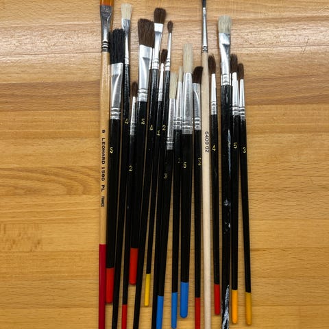 Kuvan mukaiset siveltimet. Osa käyttämättömiä. Toisia käytetty kerran vesivärimaalauksessa.