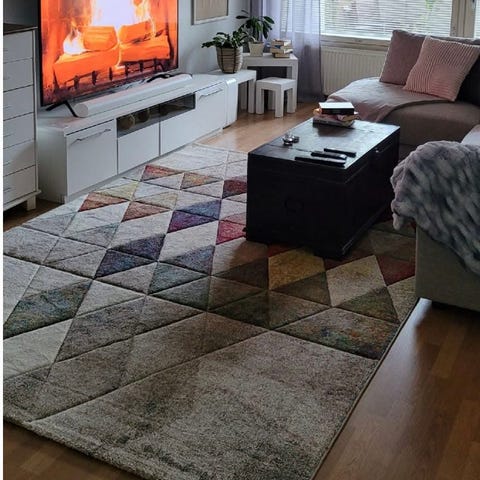 Jotexin CARA matto. Monivärinen. Tosi hyvässä ja siistissä kunnossa. Ollut työhuoneessa, joten todella vähällä käytöllä. Kaunis väri sopii jokaiseen huoneeseen. Painava, ei mikään luikuri, joten liukuesteelle ei ole ainakaan itsellä ollut tarvetta.