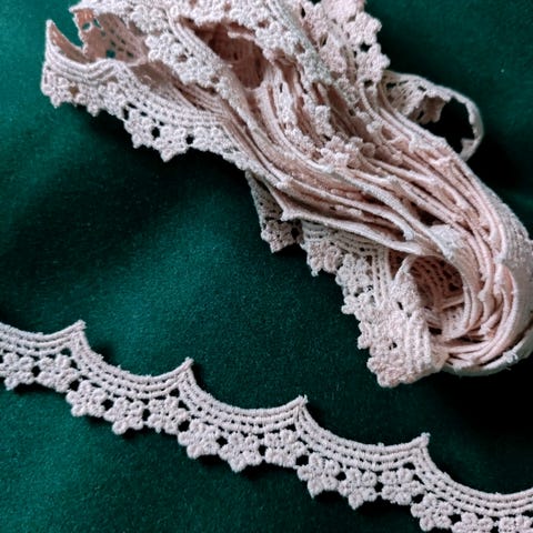 Puhtaanvalkoinen gepyyri- eli guipure-pitsi kukkakuviolla. Todennäköisesti polyamidia.
