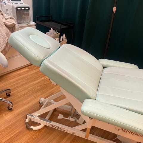 Kosmetologi hoitopeti, korkeus, istuimen kaltevuus ja selkänoja säädettävissä moottorilla.