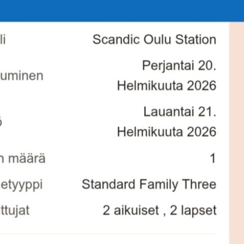 Vuokraus alkaa pe 13.2 klo 16 ja päättyy 20.2 klo 12