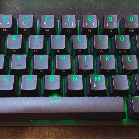 Minikokoinen mekaaninen Razer Huntsman näppäimistö, ollut todella pienellä käytöllä. Tarkemmat speksit löytyy näppäimistön takaa kuvassa 2.