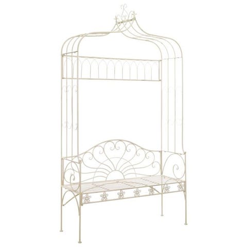 Tämä esteettinen ja koristeellinen puutarhapenkki tulee olemaan todellinen katseenvangitsija terassillasi. Takoraudasta valmistetussa metallituolissa yhdistyy kestävyys ja viehätysvoima ja se soveltuu siten täydellisesti ulkotiloihin. Lisäksi leveällä istuimella on mukava istua. Penkki on helppo koota.