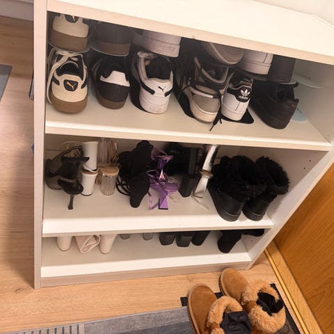 IKEA metallinen kenkähylly, jossa useita tasoja kenkien säilytykseen. Sopii käytettäväksi eteisessä tai vaikka kaapissa, jossa tarvitaan järjestystä kengille.