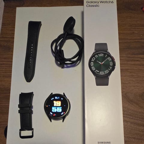 Myynnissä hyväkuntoinen Samsung Galaxy Watch 6 Classic 4G 47 mm mustan värisenä. Alkuperäinen rannehihna on muutaman kerran ollut käytössä eli uutta vastaavassa kunnossa. Näyttö on naarmuton. Rungossa on kevyttä kulumaa. Mukaan tulee myös kevytmetalliranneke säätöpaloilla. Takuuta on 12.10.2026 asti.
