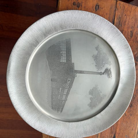 Pieni Neito kohokuviollinen tinalautanen seinälle tai pöydälle. Pohjassa leimat näkyvissä. Toridiili tai nouto.