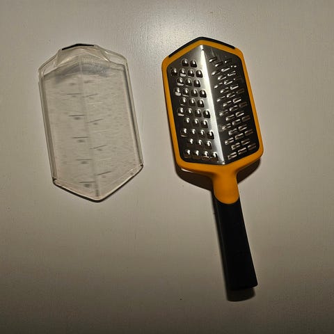 Hyväkuntoiset Fiskars-keittiövälineet: juustohöylän mallinen raastin ja yrttien leikkaamiseen tarkoitetun sakset. Itsellä ei ole ollut juuri käyttöä.