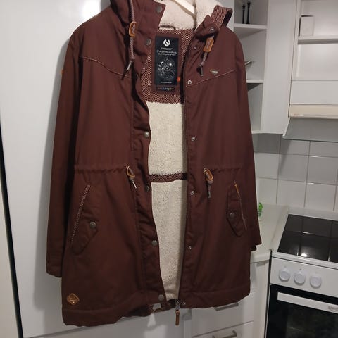 Lähes uusi takki. Pituus pyllyn alapuolelle. Tilavat hihat. Tekoturkis kaulus hupussa.