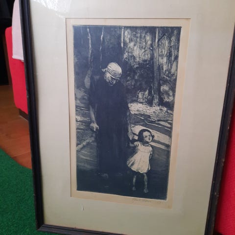 Suvi Saarniston taidejuliste ja kehys. Koko B1 eli 70x100cm, kehys vaalean puun värinen. Kunto kuin uusi.