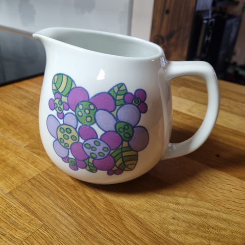 Maidontuottajille valmistettu Arabian Teema mallinen maitokannu. Valmistuttaja Valio. Täysin ehjä.