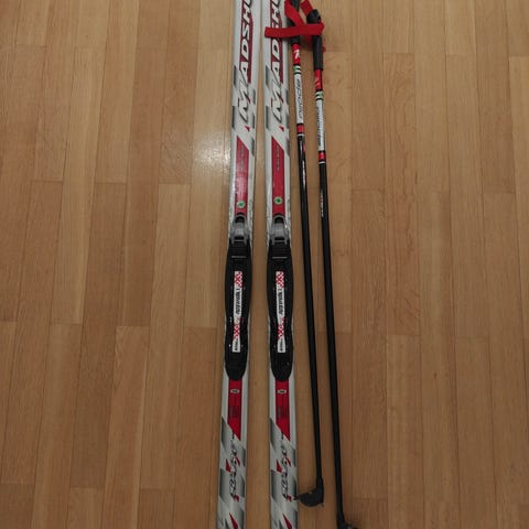 Lasten sukset, koko 130 cm. Siteet nnn-mallia. Mukaan joko 100 cm tai 105 cm sauvat (tai vaikka molemmat vitosen lisähinnalla).