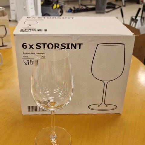 IKEA Storsint valkoviinilasit 9kpl. Yksissä juhlissa käytetty. Ehjiä. Laatikot mukaan. Olleet varastossa, vaativat ehkä pesun.
