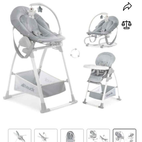 Hauck syöttötuoli, jossa pehmustettu istuin ja turvavyöt. Tuolissa on irrotettava tarjotin, jossa kaksi juomalasipaikkaa. Sopii lapsille ruokailuun ja istumiseen. Mukana sitteri osa, joka menee vastasyntyneestä eteenpäin.