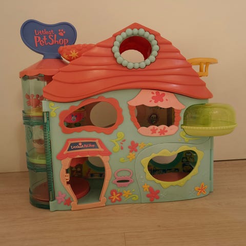 Littlest Pet Shop -talo. Muuten hyväkuntoinen, mutta ainakin yks osa puuttuu tästä (tuosta kohtaa missä on tuo reikä). Huomioitu hinnassa.