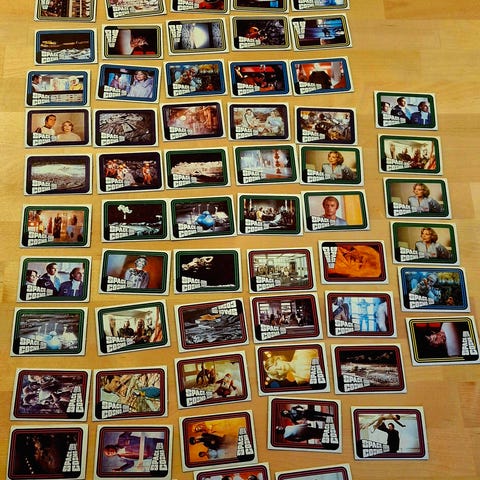 Myydään erä alkuperäisiä 1970-luvun keräilykortteja kahdesta eri tv-sarjaklassikosta: