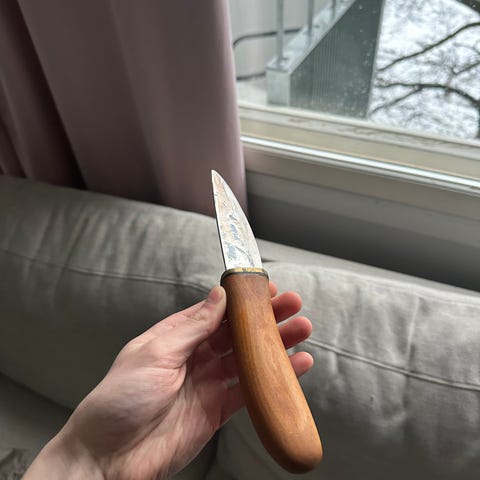 Keräilijälle, metsälle jne kuvien tuohituppinen puukko.