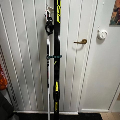 Fischer 167 cm pituiset sukset, joissa Salomon siteet.