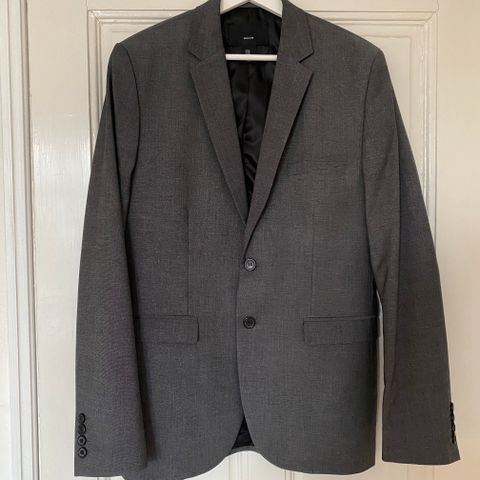 Oikein siisti pojalle pieneksi jäänyt harmaa H&M Regular puku ,housut koko 48 ja takki koko 50 .Voin myydä myös erikseen. Koko puvun hinta 15€.