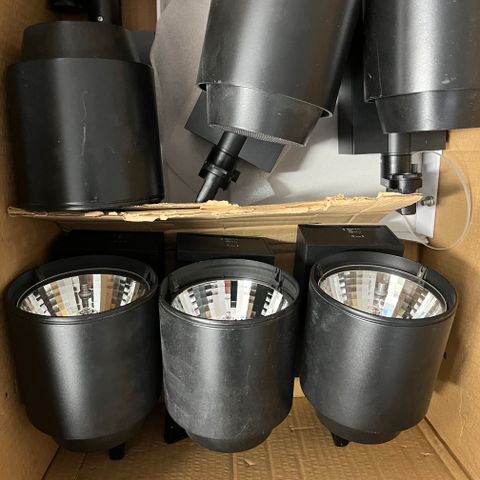 3 kappaletta himmennettäviä Ikean Urshult-ledkohdevaloja, led-ajuri, kaukosäätimen ja johtojen kera