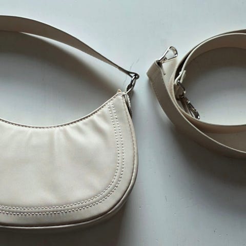Musta, kiiltäväpintainen H&M olkalaukku. Ehjä on, mutta pientä käytönjälkeä näkyvissä siellä sun täällä. Yksi isompi tasku jonka kiinnitys magneettinepparilla ja lisäksi pienempi tasku vetoketjulla. Leveys n. 27,5 cm ja korkeus n. 19 cm.