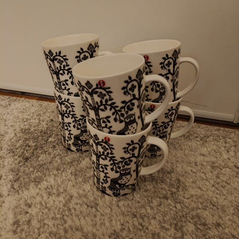 Klaus Haapaniemen Iittalalle fantasia kuvituksella suunnittelemat mukit 4dl. Kestää konepesun mikroaaltouunin ja pakasteenkin. Kunto erinomainen uutta vastaavat i-tarra kaikissa jäljellä. Kaikki 6 kpl yhteensä 100€. Katsothan muutkin myynti ilmoitukseni, kiitos.