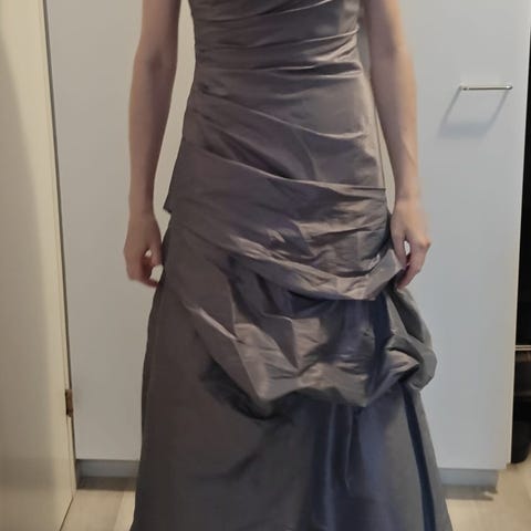 Kuvissa oleva pitkä iltapuku, väri violetti, ohuet olkaimet, takana selässä kaunis ristikko jossa koru, mekossa vuorikangas polveen asti. pesu 30 asteessa, Sopimuksen mukaan voin postittaa, kulkeutuu myös Vaajakoski-Jyväskylä suuntaan.