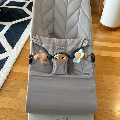 Meillä tämä pehmeä lelukaari on ollut erityisen pidetty, sillä on leikitty todella paljon, jopa selvästi enemmän kuin sillä perinteisellä puisella lelukaarella, joka yleensä tulee sitterin mukaan. Pehmolelujen sisällä helistimet.