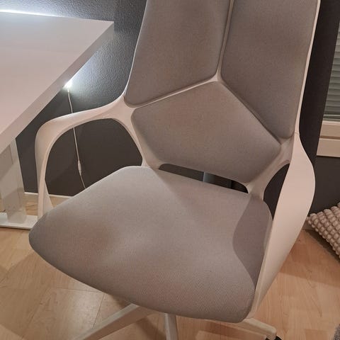 Musta uutta vastaava niskatuellinen ja ristiseläntuella varustettu työtuoli käsinojat.