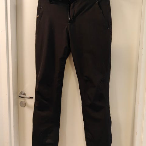 Housuissa on henkselit, sekä säädettävä vyötärö. Housuissa on myös kaksi reisitaskua ja lumilukot punteissa.