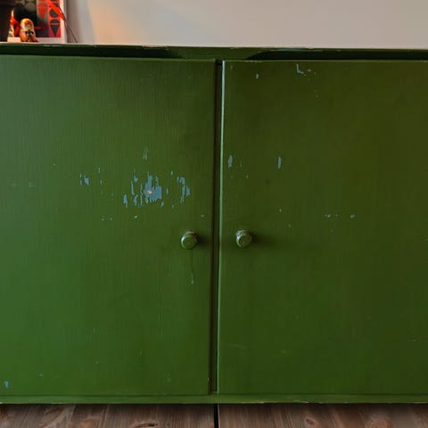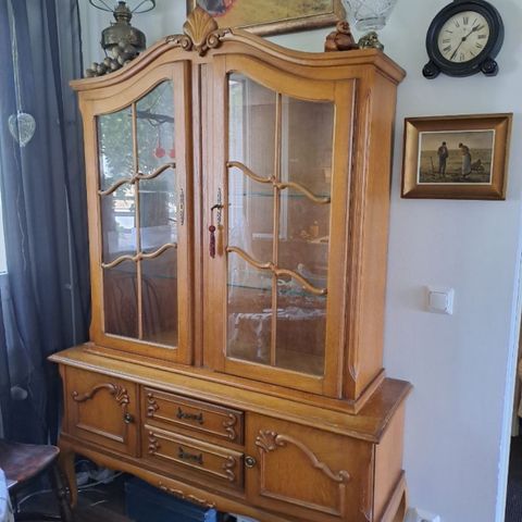 Old sideboard. Some signs of wear and tear if inspected closely. But looks beautiful. Front leg comes loose during transportation
