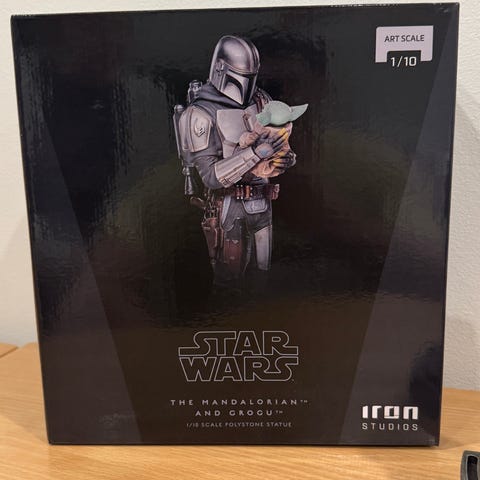 Iron Studios Star Wars The Mandalorian figuuri, joka esittää Mandalorian-hahmoa. Sisältää useita irrotettavia osia ja tukeva jalusta. Sopii keräilyyn ja esillepanoon.