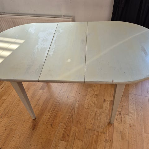 Puinen kestävä jatkettava ruokapöytä pieniä jälkiä mutta on kestävä ja ei heilu