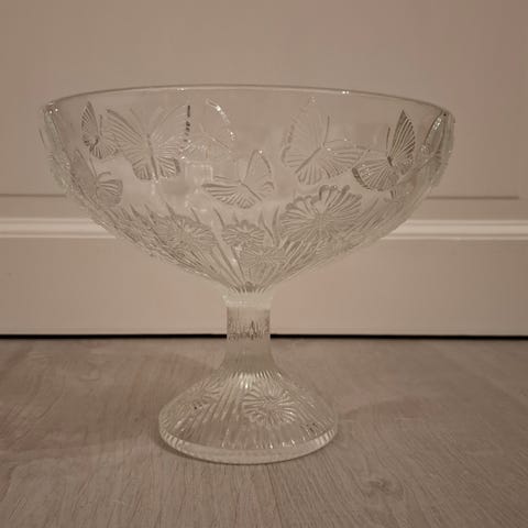 Käsinmaalattu lasikulho kukkakoristeilla