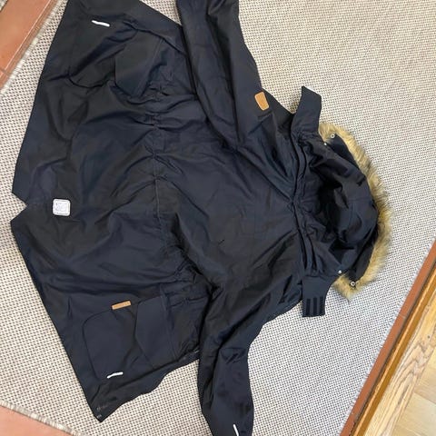 Lämmin, tuulen, tuiskun ja kosteuden pitävä talvitakki, talviparka. Kiva, hieman pidempi malli. Takki on erittäin hyvässä kunnossa, vain vähän käytetty.